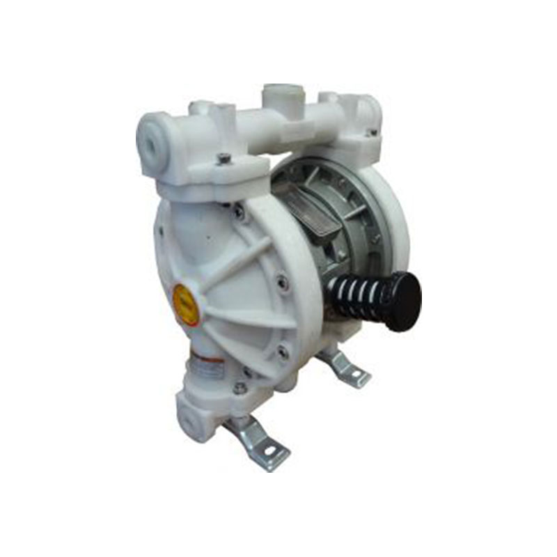 Tideway Pneumatic Diaphragm Pump GMB2P-15TFF is a polypropylene diaphragm pump that used compressed air as power source to transfer high volume of fluids from drums or tanks. This pump is able to pump flowing liquids but also transport some medium that is hard to flow as such peanut butter, sausages,oil paint and etc. It boasts many advantages which include self-priming pumps, submersible pumps, shield pumps, slurry pumps, impurity pumps and other transportation machinery. Tideway Pneumatic Diaphragm Pump GMB2P-15TFF conveys of maximum particle diameter up to 10mm with no rotary parts or shaft seal which is easy for installing or maintenance thus, the medium will be easily transported when it is pump. Tideway Pneumatic Diaphragm Pump GMB2P-15TFF widely applied in pumping food processing as mashed potatoes, syrup, etc. pigment, glue, slurry glaze of various tiles, porcelain, all kinds of abrasive materials, corrosive agents, flammable, volatile liquids, sewage, cement grout, strong acid or alkali, serve as a fore-stage pressure delivery device for all kinds of solid-liquid separation equipment and etc.