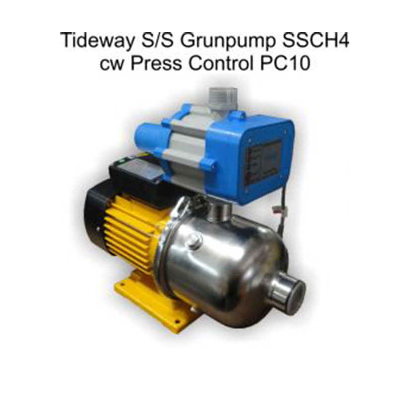 Tideway Stainless Steel Grunpump SSCH4-60 is a single phase light horizontal multistage centrifugal pump that are mainly applicability for conveying of industrial liquid, such as mineral water, soft water, pure water, clean oil and circulation, and boosting for other weak chemical-industrial medium. In other hand it also could be used in water treatment processes, industrial cleaner, air conditioning system, water supply, fertilization or metering system, heating and cooling for industrial process. The material of the pump is stainless steel with two pole induction motor that could convey the liquid with the temperature within -15~70°C, hot water less than 105°C, non explosive, flammable and not aggressive to stainless steel without solid grains or fibers. Tideway Stainless Steel Grunpump SSCH4-60 are features with sturdy construction with adopted hydraulic bulge technology, compact design, multi-purpose and transport a wide range of liquid.