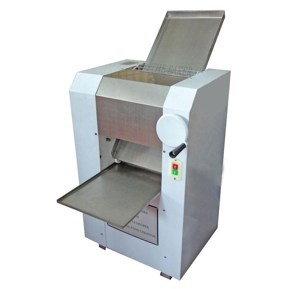 The Baker dough machine MT300 is suitable for pasta processing, pastry, bread, food industry and all kind of cake, toughness dough. The Baker dough machine MT300 is simply rotate the bread on the conveyor, automatic transmission after boot, kneading, pressing and folding. The Baker dough machine MT300 is equipped with stainless steel roller which diameter of roller is 120 mm. The Baker dough machine MT300 can produce up to 70 to 140 kg per hour which save time and labor energy.