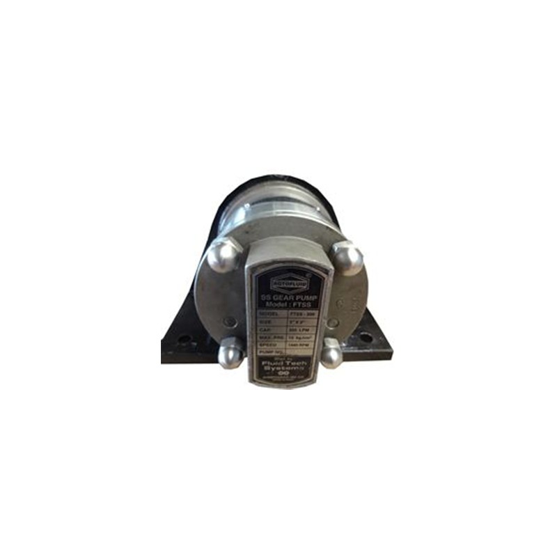Rotofluid Gear Pump S/S FTSS-125 is self-priming bi-directional, positive displacement rotary pump in all stainless steel (SS-316) investment casting construction with nitrided gear/shaft and dry-teflon coated DU bush bearing requiring no lubrication. Rotofluid Gear Pump S/S FTSS -125 is a perfect solution for transfer of corrosive, hygienic and viscous liquid. Rotofluid Gear Pump S/S FTSS-125 comes in three piece construction are easily cleanable and maintainable. Rotofluid Gear Pump S/S FTSS-125 is designed to run at 1440 RPM up to viscosity of 500 CST. The back cover can simply be removed by four dom nut or the right angle mounting brackets facilitate foot mounting of the pump on base plate with electric motor of appropriate ratings. Rotofluid Gear Pump S/S FTSS-125 can be used for handling viscous food products like Ghee, Butter, Fruit Pulp, Vegetable sauce, starch and etc. Rotofluid Gear Pump S/S FTSS-125 also used in pharmaceutical industries for handling sugar solution, Glycerine, Glycol and etc. In chemical industries corrosive viscous chemicals can be easily handled with Rotofluid Gear Pump S/S FTSS-125 most effectively.